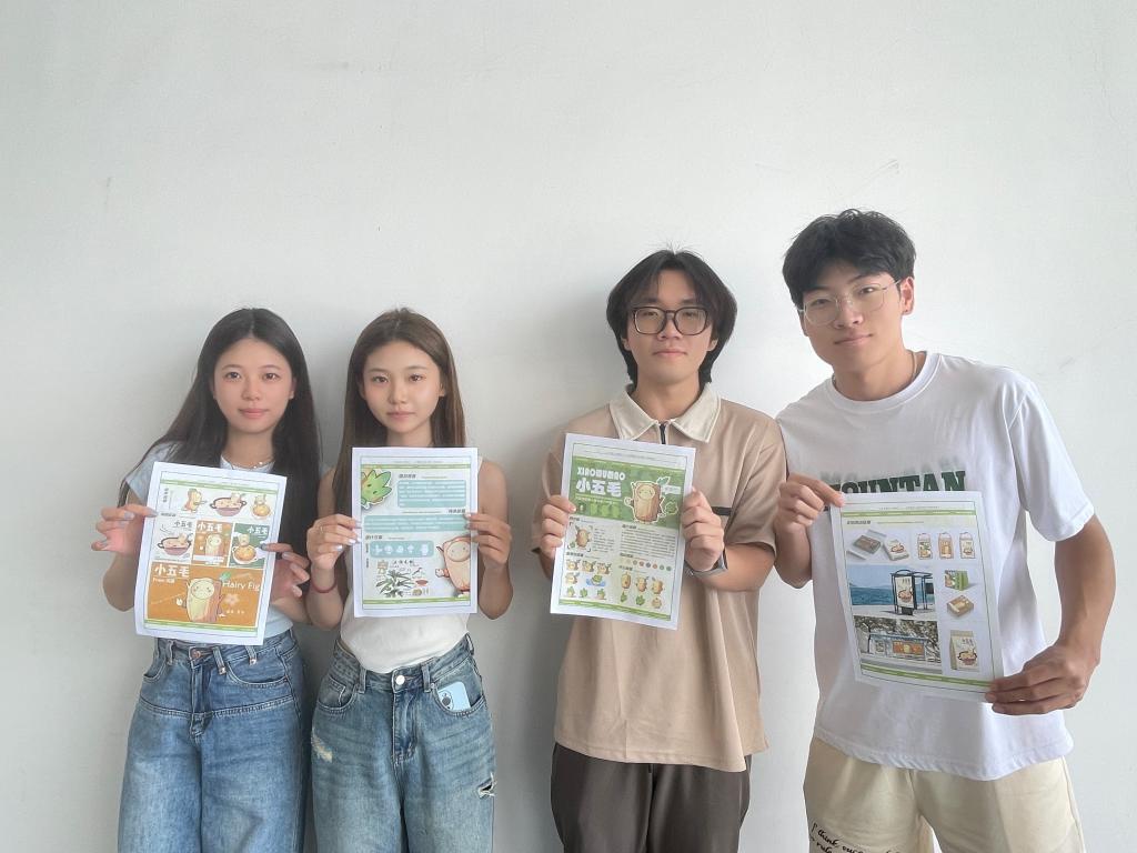 随后,队员们前往埔前镇开展为期一周的“三下乡”暑期社会实践活动。团队共分为设计组、调研组和宣传组三个组别,调研组围绕设计项目,深入五指毛桃产业园、埔前镇街头巷口,与生产厂家、商户、消费者等面对面交流,且通过问卷调查、访谈等方式,了解大家对五指毛桃的喜爱程度、食用方式、IP形象和文创产品需求等内容;设计组在“小五毛”IP形象的1.0版本基础上,与指导老师和相关负责人进行了多次研讨,不断修改完善设计方案,积极升级完成2.0版本;宣传组则积极制定宣传方案,设计宣传主题和形式并记录活动的精彩瞬间,为后续宣传提供素材。