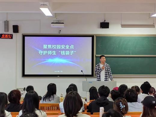 2023 年 11 月 15 日,taptap点点官方网站开展了“防范金融诈骗,巩固安全底线”反诈知识宣讲会。会议由辅导员袁鑫帅老师主持。