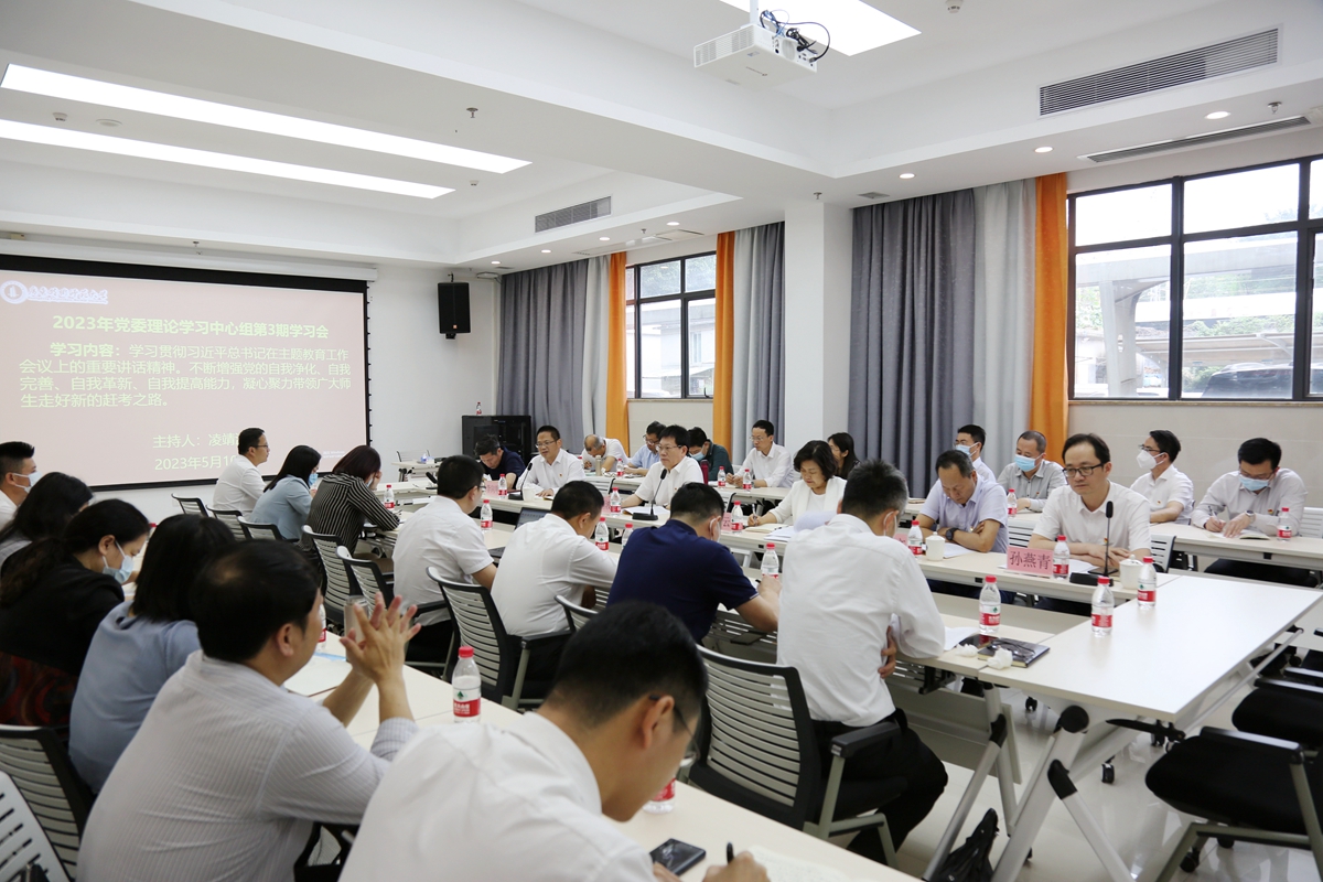 为深入学习贯彻习近平总书记在主题教育工作会议上的重要讲话精神,不断增强党的自我净化、自我完善、自我革新、自我提高能力,凝心聚力带领广大师生走好新的赶考之路,5月10日,学校在西校区实训楼104会议室召开党委理论学习中心组2023年第三期学习会。党委理论学习中心组成员参加会议。学校党委书记凌靖波主持会议并发言。