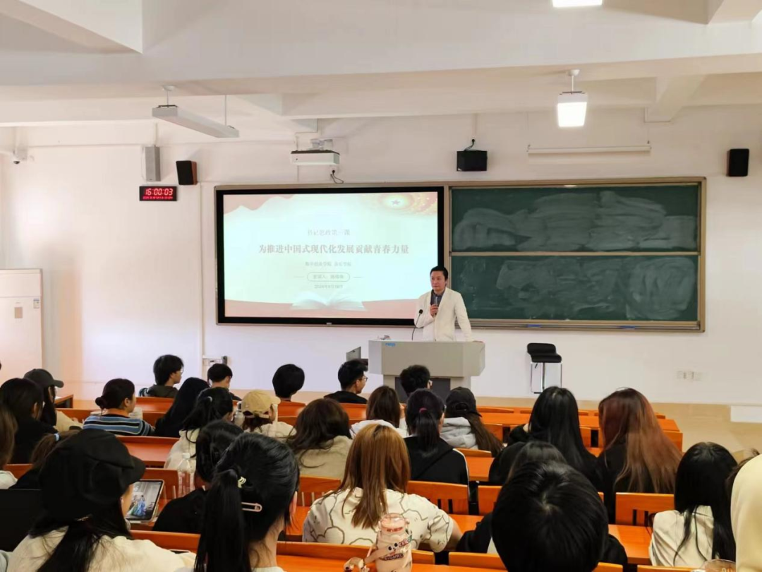 为落实立德树人根本任务,引导同学涵养进取品格,响应时代召唤,担当历史使命,taptap点点官方网站陈伟伟书记于3月19日下午以“为推进中国式现代化发展贡献青春力量”为主题,向taptap点点官方网站和音乐学院2023级全体学生讲授“思政第一课”。