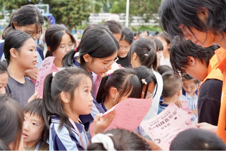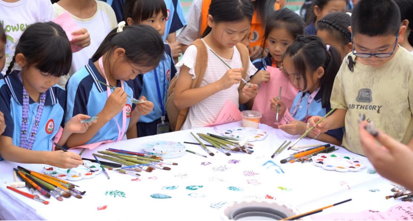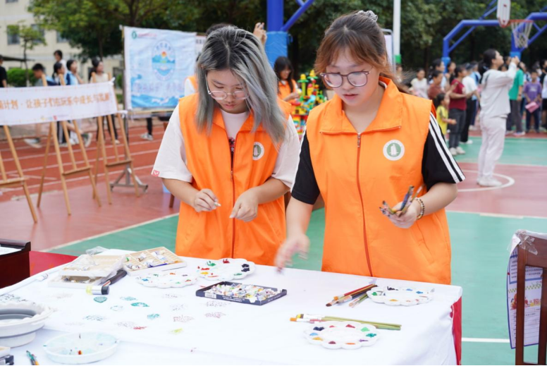 活动里,大学生既是“艺术导师”,也是“同行玩伴”,和孩子们一起涂涂抹抹、笑闹打趣。这次活动不仅激发了小学生的童趣想象,也让大学生重拾童年的纯粹。