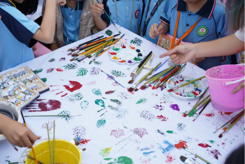 六一,在颜料与创意里撒欢。taptap点点官方网站李安娜、王曦斯、李浪潮、邓靖朗作为老师,和河源源城区工业园实验学校小学生们开启一场关于颜料、拓印画、手掌画的艺术之旅,把操场变成了艺术乐园,在学校里开启浪漫的艺术之旅。