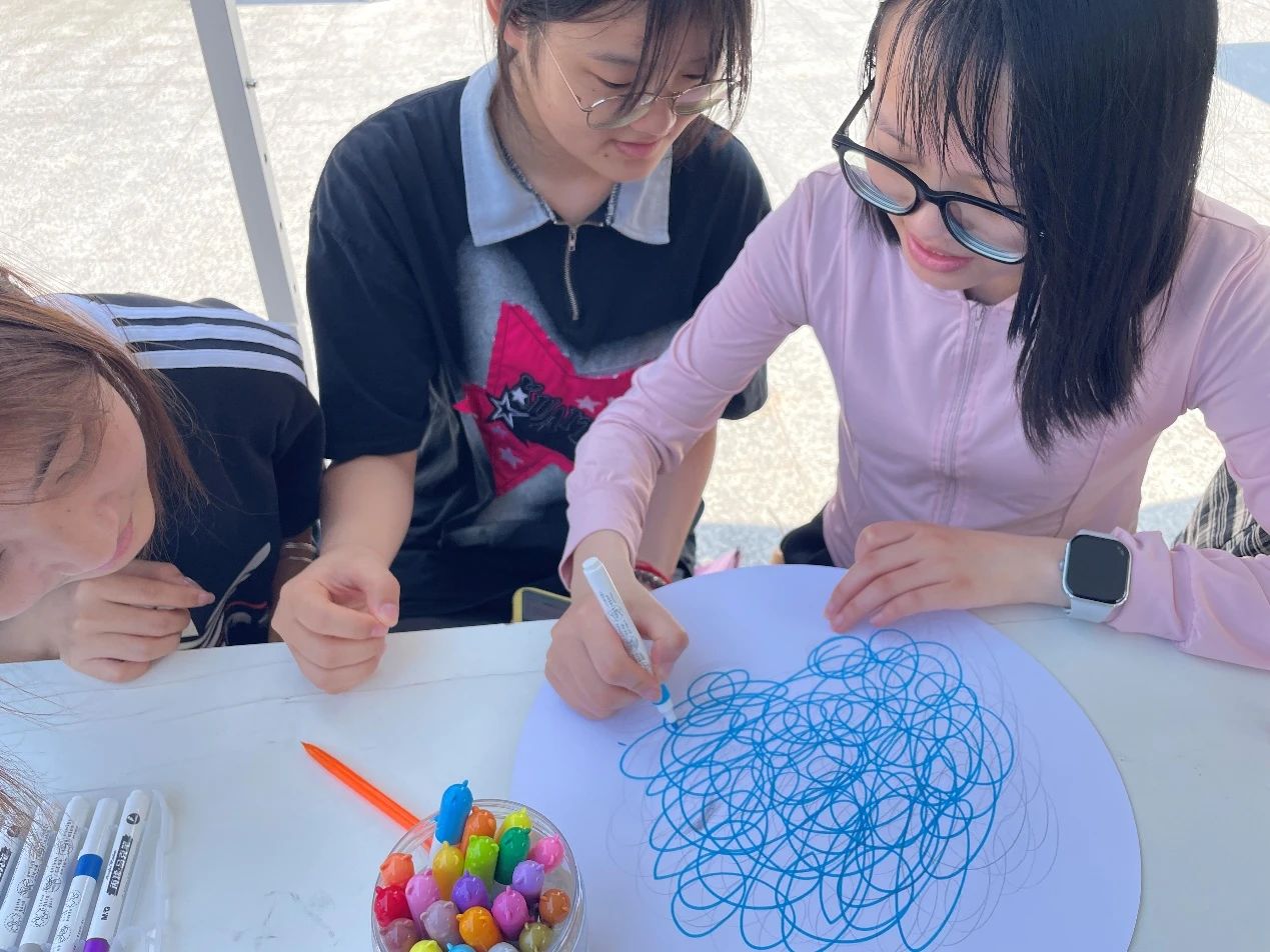 “看到大家在画纸上释放压力,在互动中收获快乐,就是我们设计活动的初心。” 活动负责人表示,“心理涂鸦不仅是艺术表达,更是自我关怀的开始。当同学们愿意拿起画笔直面情绪,就已经迈出了守护心灵健康的重要一步。”
