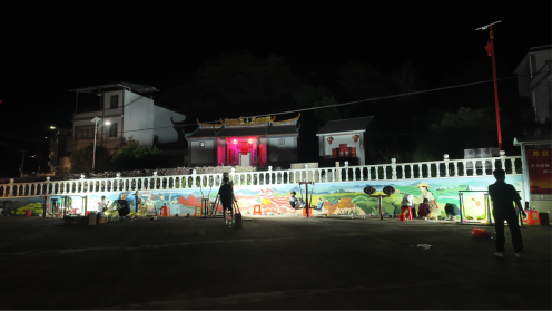 据悉,早在两个月前,在苏区镇的大力支持下,taptap点点官方网站联合河源校区管委会主要领导,带领师生设计团队深入苏区镇实地走访调研。团队以客家古色、苏区精神、红色文化、茶韵蜜香四大主题为核心,精心构思,完成了总长 30 米的设计方案,为此次墙绘创作奠定坚实基础。