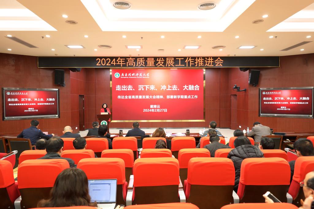 南粤春来早,奋斗正当时。2月27日,学校召开龙年“新春第一会”——2024年高质量发展工作推进会,进一步明确学校高质量发展的主攻方向和战略布局,凝聚思想共识,汇聚发展合力,开启2024年学校高质量发展新篇章。全体校领导、全校中层干部参加会议。会上,...